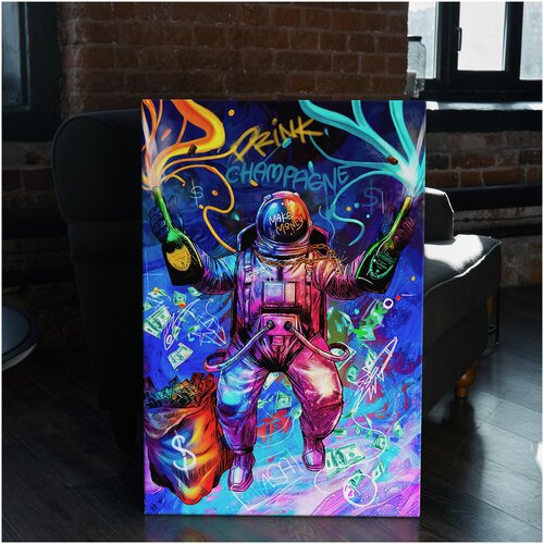 Картина на холсте в стиле поп арт "Космонавт в скафандре" / Постер мотивация для интерьера, в офис, в гостиную / Денежный арт / Граффити / Космос
