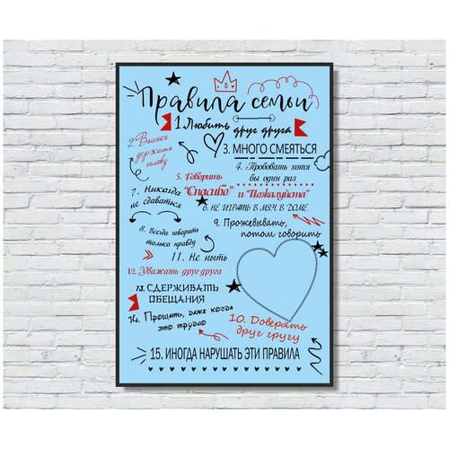 Постер на натуральном холсте "Правила нашей семьи" 40х60 см, / Правила дома / Картина в подарок / Подарок для дома