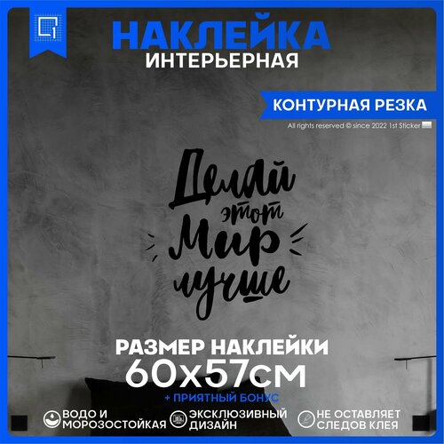 Наклейки на стену интерьерные Надпись делай мир лучше 60х57см