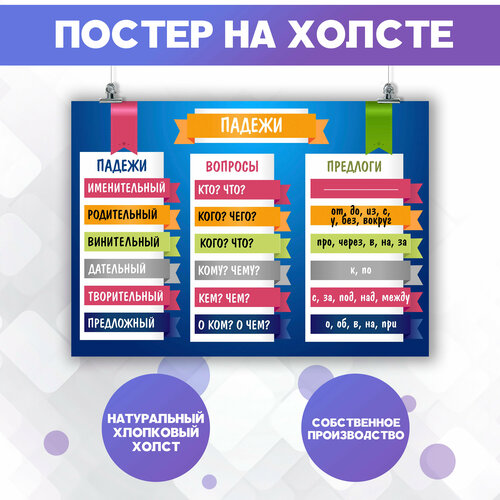 Постер на холсте Для школы Правила для детей Русский язык Падежи Шпаргалки (1) 30х40 см