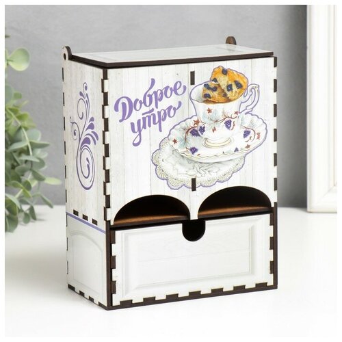 Чайный домик двойной с ящиком "Доброе утро" 20х8,7х15,2 см