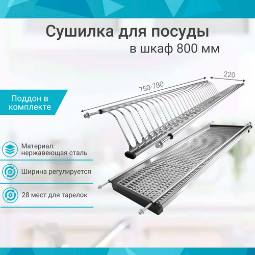 Посудосушитель в базу 800 мм, нержавеющая сталь (комплект)