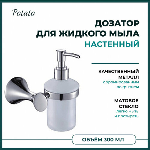 Дозатор для жидкого мыла Potato настенный, хром/матовое стекло