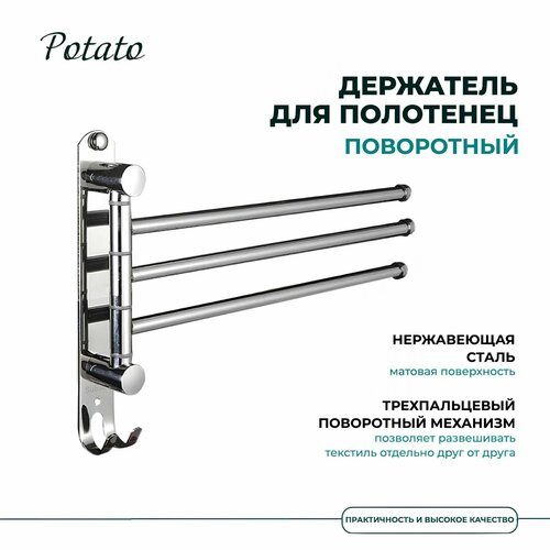 Держатель для полотенец в ванную поворотный тройной, Potato
