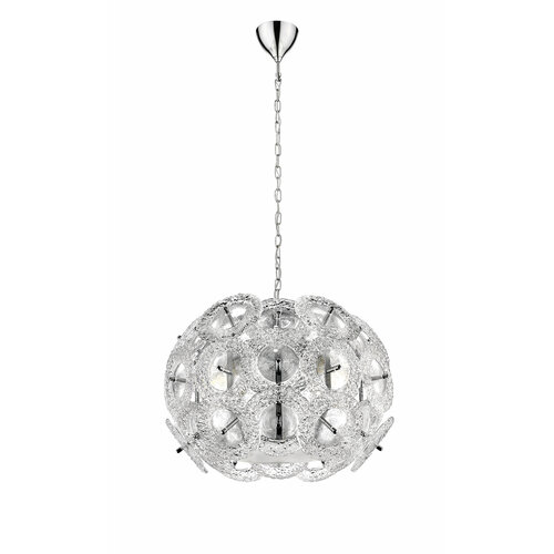 Потолочный светильник из металла цвета хром и стеклянных трубочек с хромовыми наконечниками. D640mm, H330mm, 6хG9