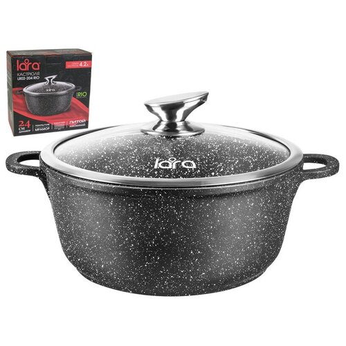 Кастрюля 4,2л 24см LARA серия Rio мрамор, капсул. инд. дно, крышка