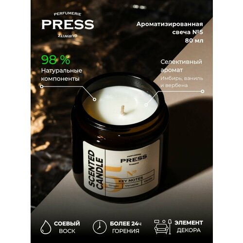 Свеча ароматическая PRESS GURWITZ PERFUMERIE №5 ноты имбиря, ванили и вербены, для дома интерьерная , аромалампа для уюта, комфорта и атмосферы, на подарок