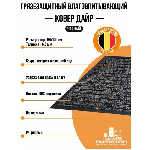 Коврик придверный ворсовый влаго-грязезащитный Дайр, 66х120 см, антрацит