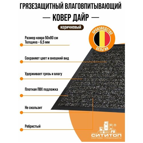 Коврик придверный ворсовый влаго-грязезащитный Дайр, 50х80 см