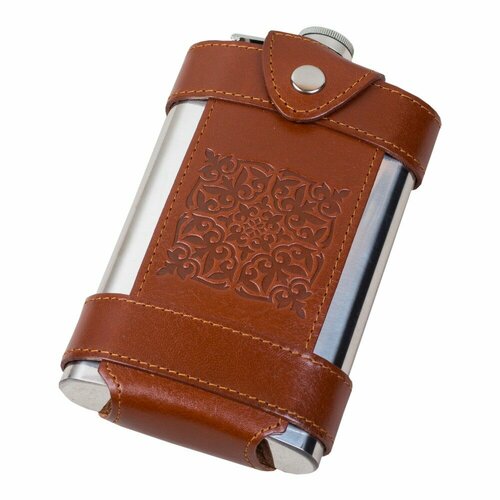 Фляга походная в оплетке из натуральной кожи "Ornament"