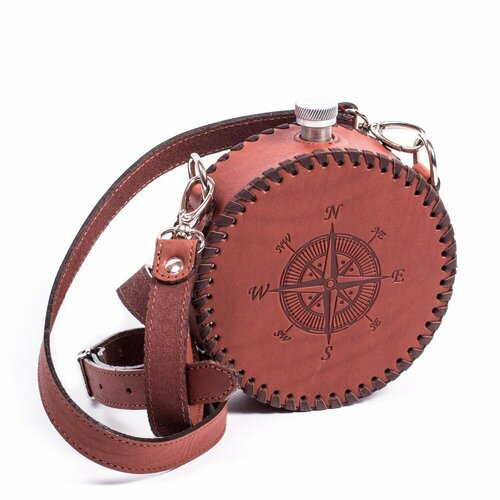 Фляга "Компас" круглая 0,5 л, обтянутая натуральной кожей