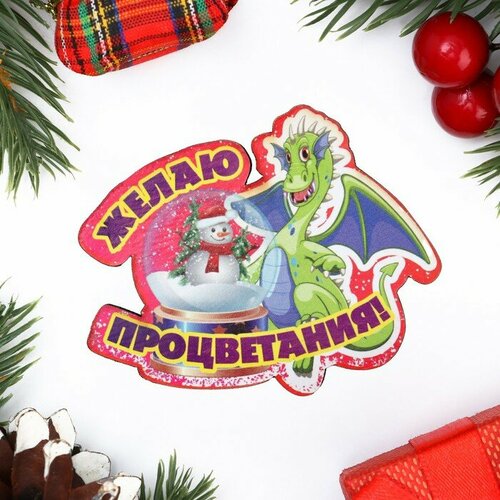 Магнит новогодний "Желаю процветания!" символ года, снеговик