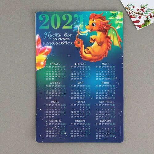 Магнит-календарь 2024 «Пусть все мечты исполняются», 12 х 8 см