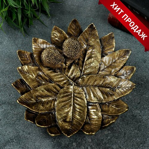 Подставка конфетница "Пара ежей на тарелке из листьев" золото, 24х24х6,5см