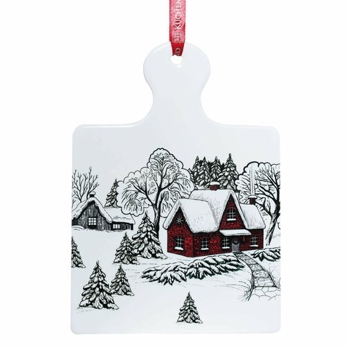(W)Подставка под горячее, 14х24 см, с ручкой, керамика/пробка, белая, Дома в лесу, Forest house