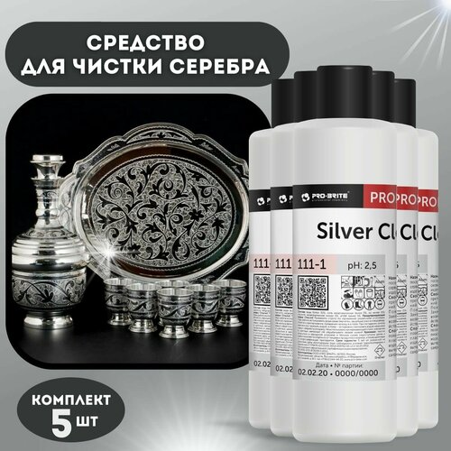 Средство для чистки изделий из серебра Silver Cleaner 1л, уход за ювелирными украшениями и приборами,5 шт.