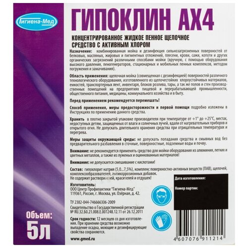 Профхим д/пищ. произв щел, пенн, с дез-эфф, хлор Бриллиант/Гипоклин АХ4, 5л
