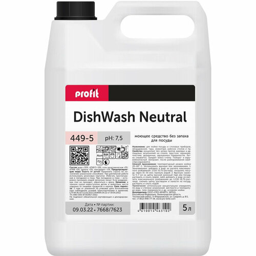 Профхим д/посуды д/ручного мытья, без запаха PROFIT/DISHWASH neutrale, 5л