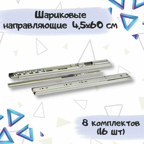 Шариковые направляющие полного выдвижения с доводчиком, ширина 45мм, длина 600мм (8 комплектов)