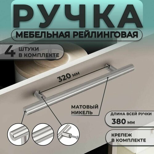 Ручка для мебели рейлинг 320 мм /Комплект 4 шт/Никель матовый