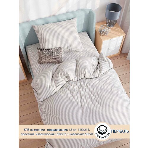 Постельное Белье из перкали 1,5-спальное арт 1276ЧН "Легкое дыхание 1 сер"