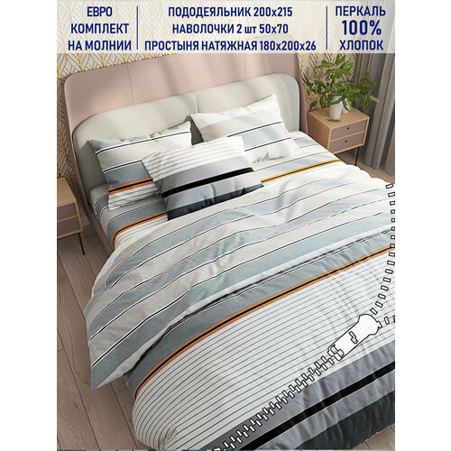 Постельное белье Котики Котики "Аляска" евро наволочки 50х70 2шт Простынь на резинке 180х200 см Пододеяльник 200х215 см