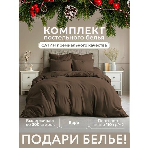 Постельное белье Евро Lisleep, сатин, наволочки 50x70 см, шоколадный