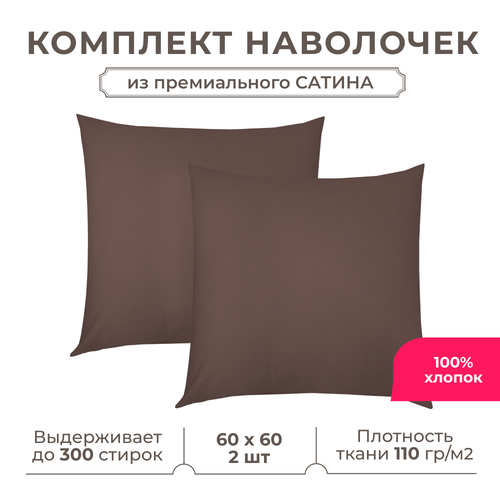 Набор наволочек Lisleep 60x60 см, 2шт, сатин (хлопок), шоколадный