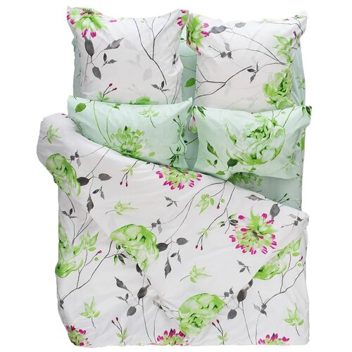 Постельное белье Евро 200x220 Simple Living Hawaii 2 спальный комплект из сатина, Зеленый