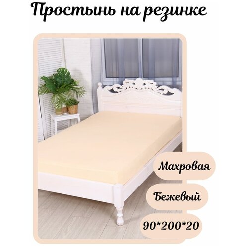 Цены на Простыня махровая на резинке Папа Швей Однотонная ,140 х 200 x 20 см, молочная бежевый, размер 2, спальный в г. Москва