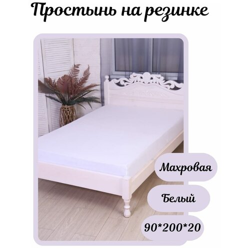 Простыня махровая на резинке Папа Швей Однотонная ,90 х 200 x 20 см, белая