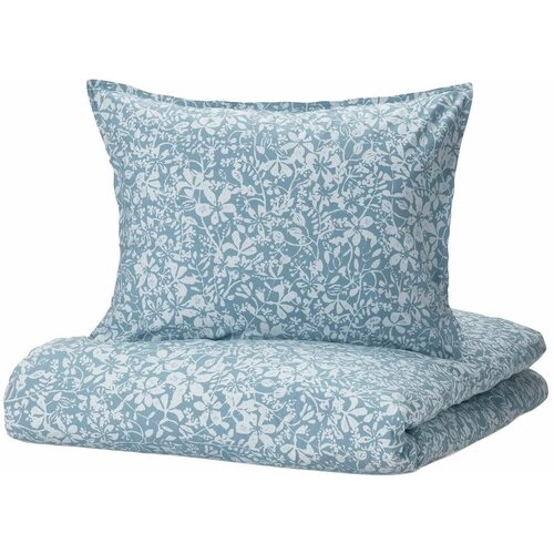 Пододеяльник 1,5 спальный, наволочка саломея (икеа соммарслоя) 150x200/50x70, цветочный орнамент/синий, поплин KL-20529750