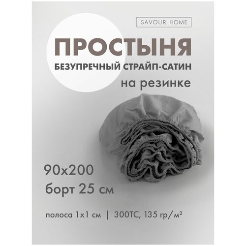 Простыня на резинке 160х200 см и высотой борта 25 см. Savour Home из Страйп-Сатина, 100% органический хлопок. Резинка по всему пери...