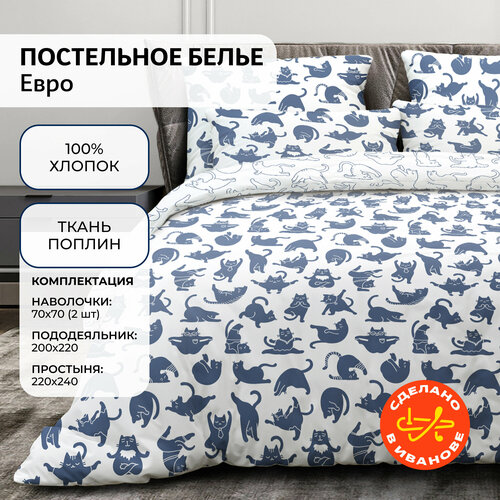 Комплект постельного белья Волшебная Ночь 1.5 спальный 148х215 Yoga cat, пододеяльник 148х215, наволочки 70х70, поплин, хлопок 100%