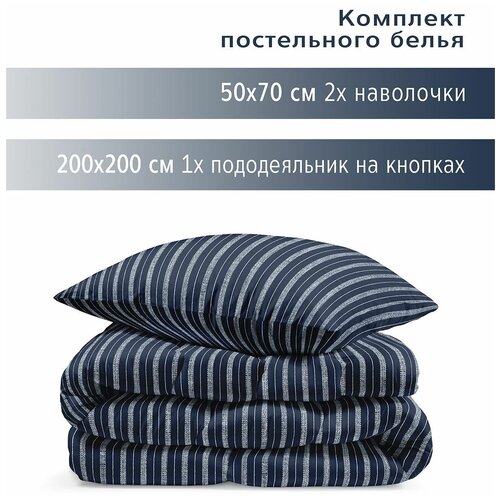 Комплект постельного белья, 2 спальный YERRNA, наволочки 50х70 2шт, перкаль, темно-синий, с2082шв/210081