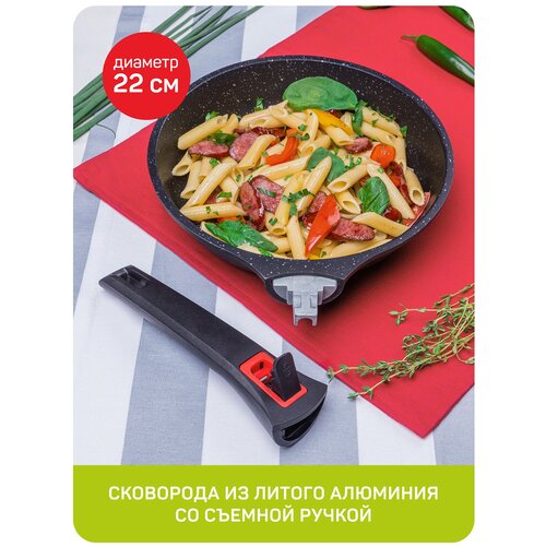 Сковорода с антипригарным покрытием, со съемной ручкой, 22 см