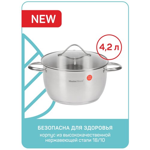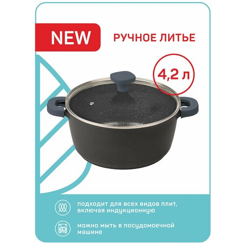 Кастрюля из литого алюминия с антипригарным покрытием и стеклянной крышкой Шеф Андреа 4,2л