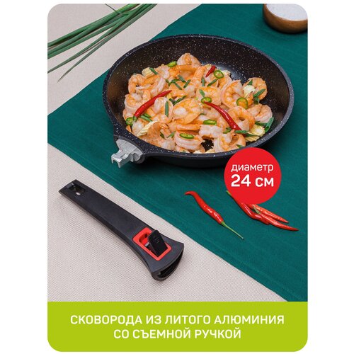 Сковорода с антипригарным покрытием, со съемной ручкой, 24 см