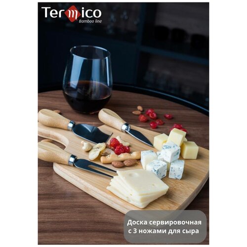 Набор для сыра с ножами, доска для подачи "Termico", бамбук, 28*20*3,8 см.