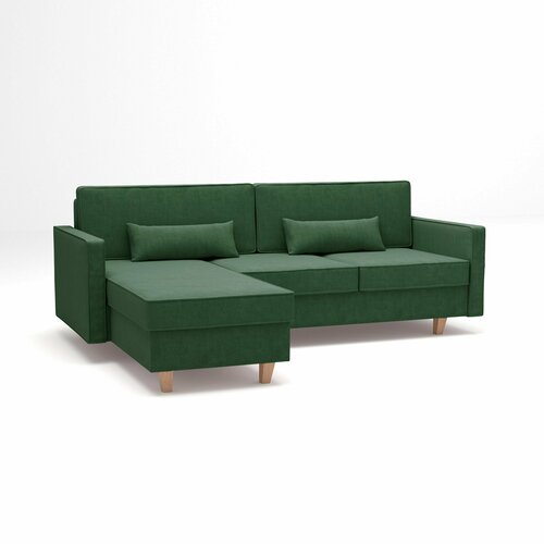 Угловой диван на ножках Оламайд, правый угол, еврокнижка тик-так, с ящиком для белья, 2160 ×1450×800, спальное место 200x145 см , микровелюр