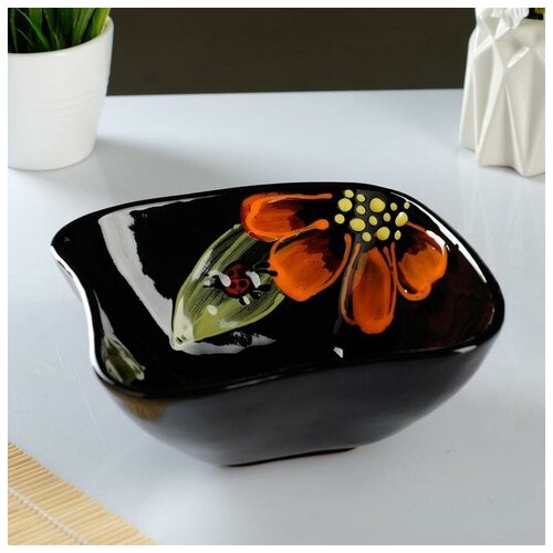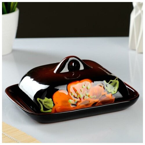 Масленка "Полянка" мак на черном, 8х18х13см