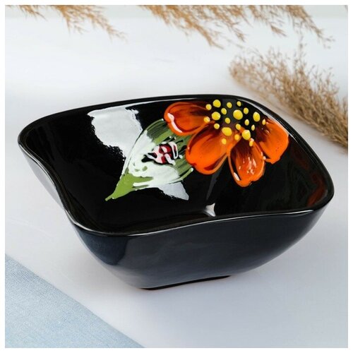 Псковский гончар Сахарница "Мак на черном" 0,5л