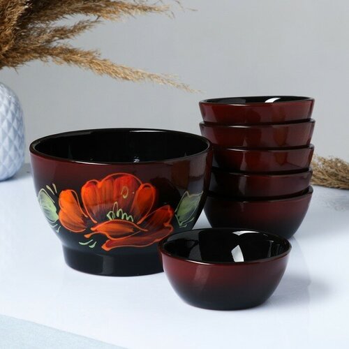 Набор салатников "Лето" мак на черном, 6х0,2л, 1х1л