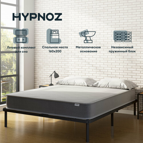 Кровать HYPNOZ Frame черная с матрасом HYPNOZ Spring Evo, 160х200