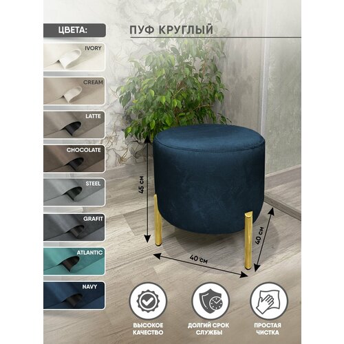 Мягкий, дизайнерский пуфик является ярким украшением современного интерьера. В обивке используются высококачественные материалы , которые не деформируются при многократной ежедневной эксплуатации. Красивые металлические опоры имеют пластиковые накладки, которые защитят ваш пол от зарапин и лишнего шума при передвижении. Круглый пуфик легкий и компактный наполняет уютом пространство , его скромные размеры позволяют разместить его в любой комнате : прихожей, кухне, спальне, детской, гостинной, гардеробной и даже балконе. Так же пуф станет отличным подарком близкому человеку, на годовщину, памятную дату, любой праздник. Пуф хорошо упакован в защитную пленку и картонную коробку. Мы стараемся что бы Вы остались довольны, приятных покупок!