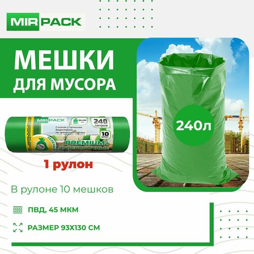 "PREMIUM +" 240 литров, 10 штук, ПВД 45 мкм, размер 93х130 см, зеленые, 1рулон