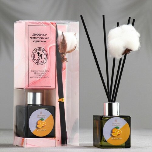 Ароматический диффузор Богатство Аромата с цветком хлопка "Нежный", 50 мл, апельсин