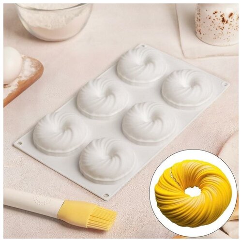 Форма для муссовых десертов и выпечки Доляна «Вихрь», 29,8×17,5×3 см, 6 ячеек, d=7,7 см, цвет микс