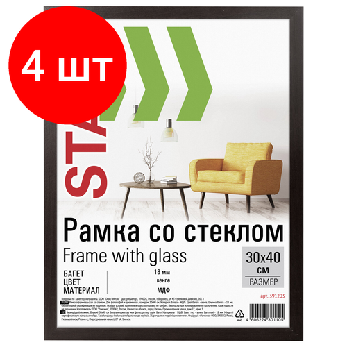 Комплект 4 шт, Рамка 30х40 см "венге" STAFF "Grand", багет 18 мм, стекло, МДФ, 391203