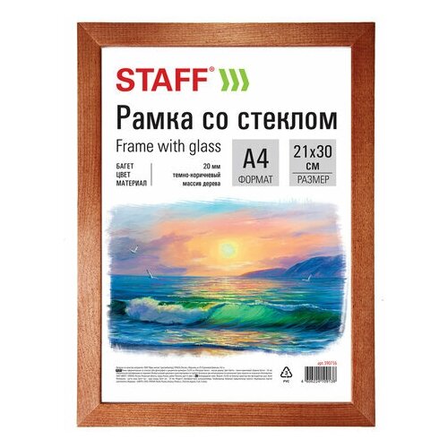 Рамка 21х30 см, дерево, багет 20 мм, STAFF, темно-коричневая, стекло, 390716 - 2 шт. коричневый, темный